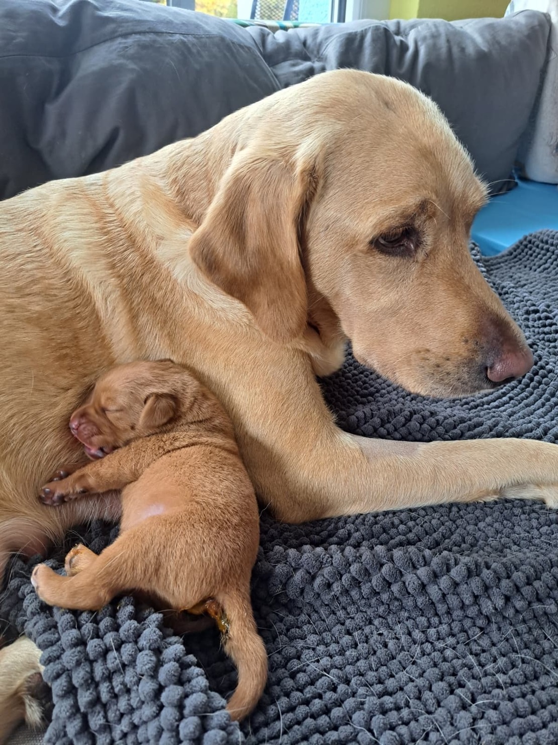 Ich habe schon seit meiner Jugend Hunde und hatte mit meiner letzten Labrador-Schäferhund-Hündin das erste Mal einen Welpen.